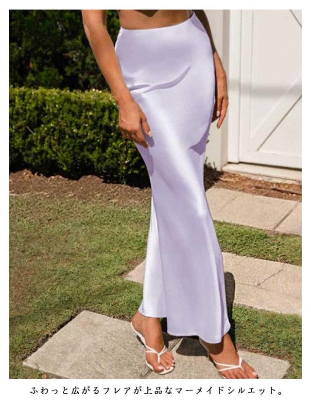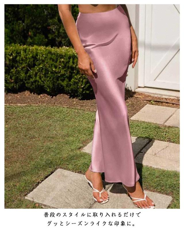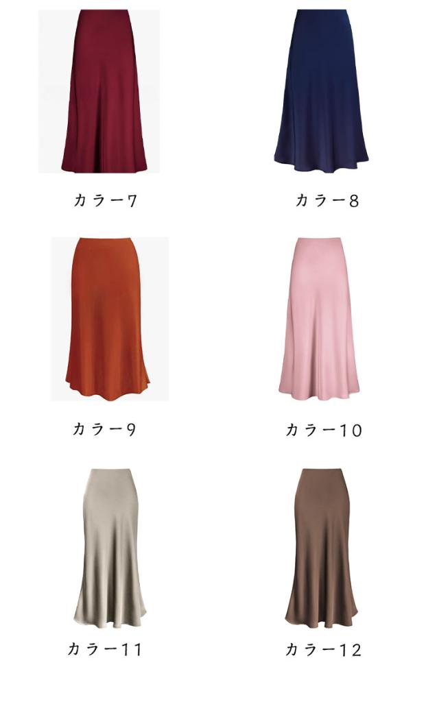 カラフル12色展開 スカート 着回し サテン タイトスカート ハイウエストスカート カラフル12色展開 裾フレア マーメイド スカート オフィス 通勤 普段使い マーメイド エレガント ビジネス マーメイドスカート