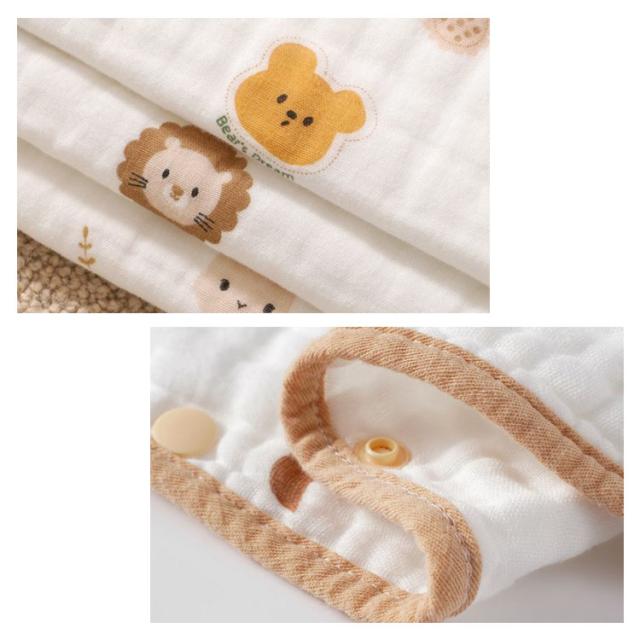 | キッズ・ベビーの寝冷えを防ぐアイテムガーゼスリーパー。【4重ガーゼ】 ガーゼを4層に重ね、ふんわり織り上げた4重ガーゼでスリーパーをお作りしました。 柔らかなガーゼ素材は毎日使いたくなる肌触り。 洗うほどにガーゼが柔らかくふっくらしてくるのも特徴です。 ふんわりと空気を含んだ生地は、寒い時には暖かく、暑い時には汗と素早く吸収してくれます。 パジャマの上から羽織るのはもちろん、かわいいデザインなので普段着の上に羽織ったり、 ルームウエアに羽織ったりとお使いいただけます。 1年を通してお使いいただける素材です。 大きくなってもベストとして使えるのも嬉しいポイント。 (肩部分はスナップボタン仕様です。) ひつじとハリネズミ柄が可愛らしく、ボーイズ、ガールズ問わずにお使いいただけます。 出産祝いや誕生日のギフトにもおすすめアイテムです。 | |