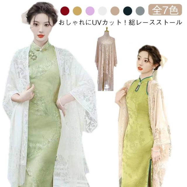 ストール 総レース ストール 紫外線対策 カーディガン 大判 UVカット レディース 花柄 レース マフラー 薄手 フリンジ 日よけ 無地 夏用 羽織り UVカット 日除け 冷房対策 春 夏 秋 冬 きれいめ おしゃれ 送料無料