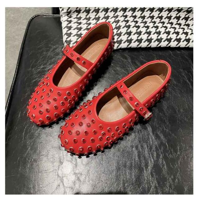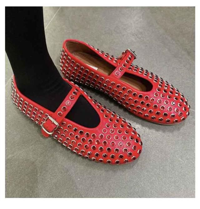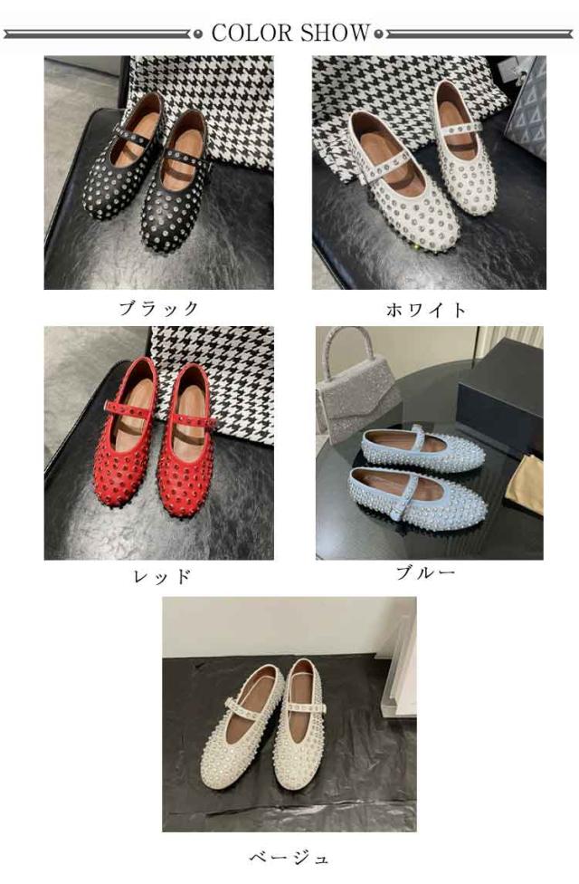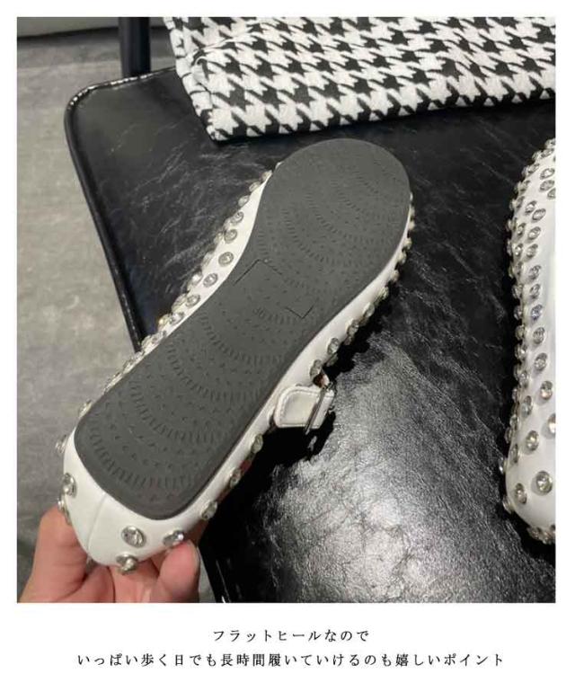 レディース ラインストーン バレエ ラインストーン パンプス 華奢見え パンプス 履きやすい 走れるパンプス ローヒール フラットシューズ フラット パンクリベット バックル 走れる ぺたんこ シューズ ブラック ホワイト レッド ブルー