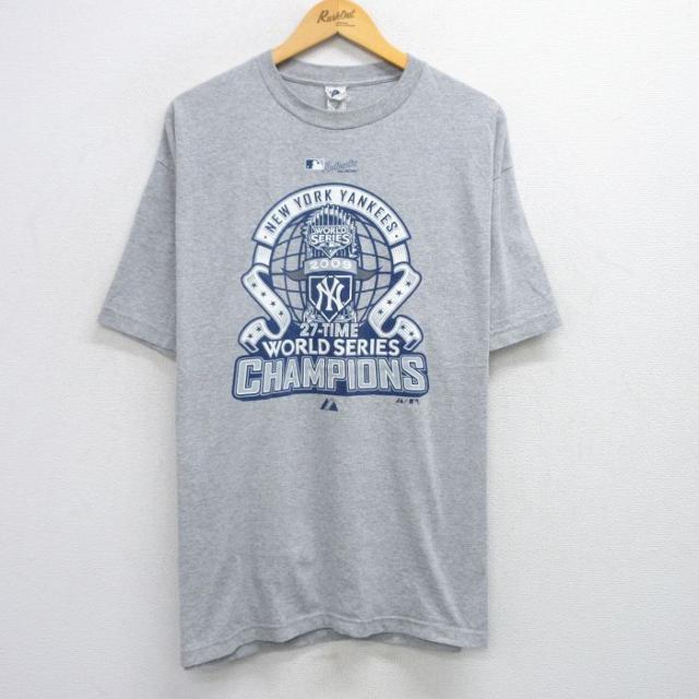 【商品名】 XL★古着 半袖 ビンテージ Tシャツ メンズ 00年代 00s MLB ニューヨークヤンキース クルーネック グレー 霜降り メジャーリーグ ベースボール 野球