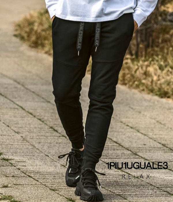 1PIU1UGUALE3 RELAX ウノピゥウノウグァーレトレ リラックス パイピングロゴワイドスピンドルジョガーパンツ スウェット メンズ ジャージ カジュアル スポーツ