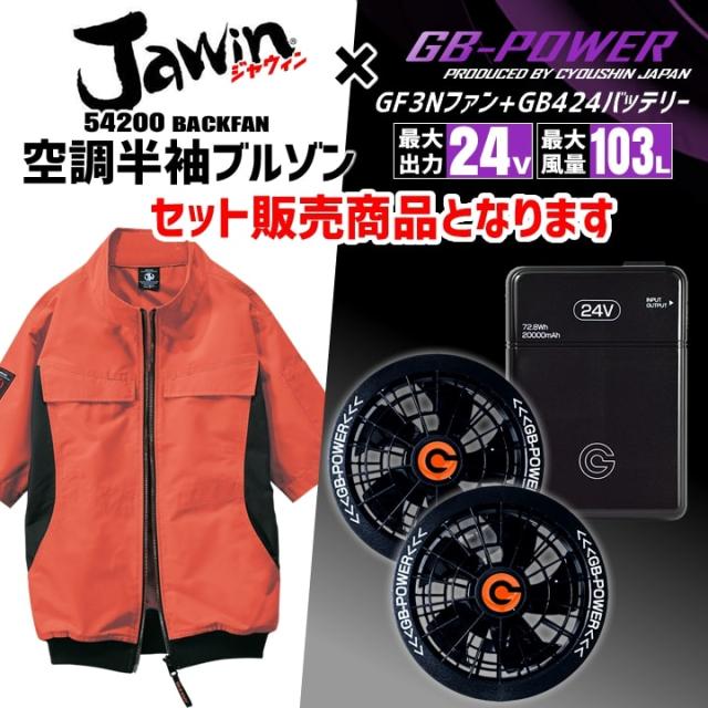 【即日発送】空調服 半袖ブルゾン サイドファン JAWIN 54200 バッテリー&ファンセット GB-POWER 24V 遮熱 アルミコーティング UVカット 熱中症対策 軽量 撥水加工 空調作業服 フルセット ファン付きウェア 自重堂