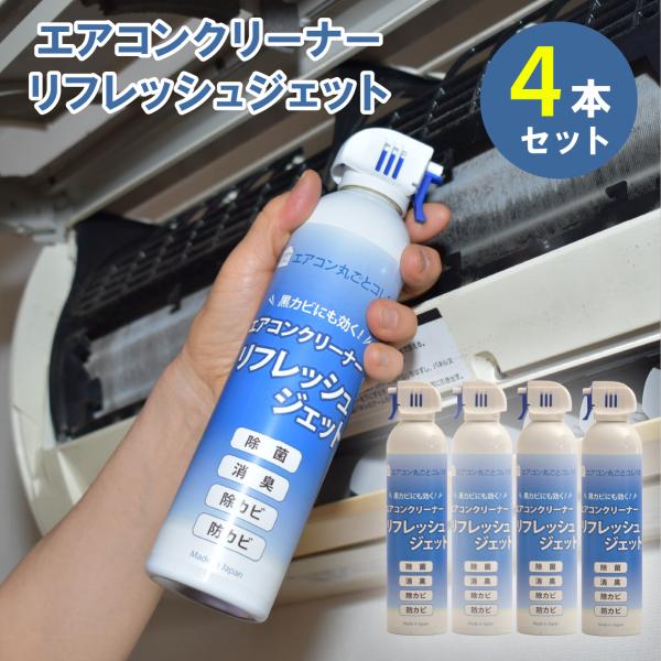 エアコンクリーナー リフレッシュジェット 4本セット 洗浄 除菌 消臭 抗菌 防カビ 防かび 除カビ 臭い くさい 節電 エアコン 洗浄スプレー 掃除スプレー エアコン掃除 エアコン洗浄スプレー カビ かび 黒かび ダントッツ