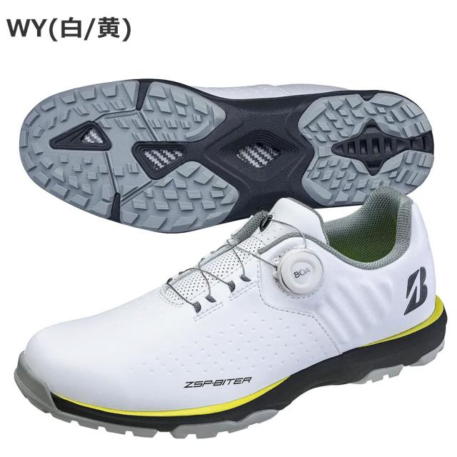 ブリヂストン ゴルフ シューズ ゼロ・スパイク バイター ライト SH2505 WY 白×黄 メンズ 3E スパイクレス ボア ダイヤル式 2025年モデル BRIDGESTONE GOLF