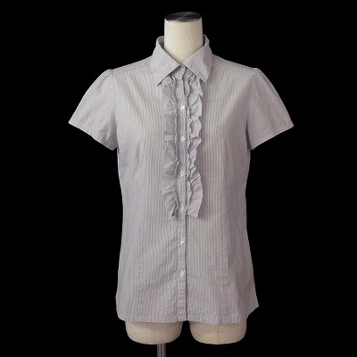 【中古】ニューヨーカー NEWYORKER ブラウス シャツ ピンストライプ フリル 半袖 コットン 75-11 レディース
