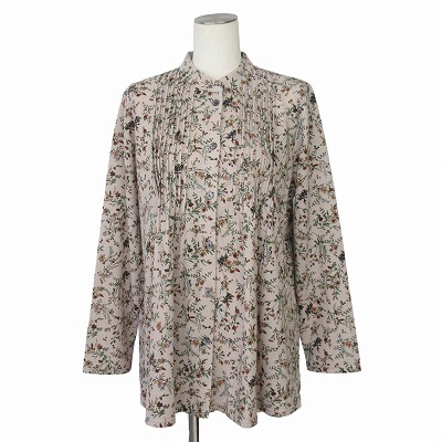 【中古】ハッシュパピー Hush Puppies ブラウス シャツ スタンドカラー 長袖 花柄 タック ニット M レディース
