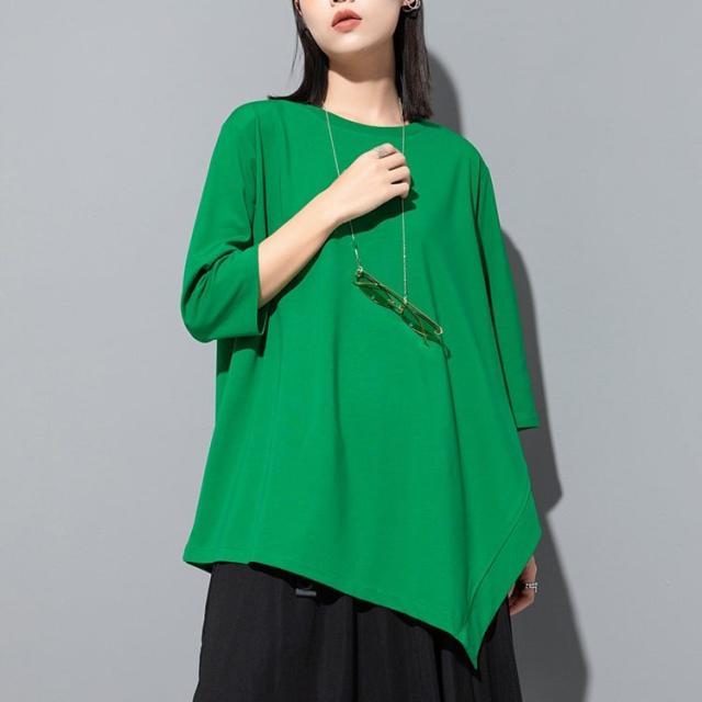 トップス レディース シャツ モード系 アシンメトリー 5分袖 半袖 Tシャツ カットソー ミドル丈 個性的 pLegLad店 不規則 ゴシック アシメ ゆったり 大人 きれいめ 黒 春 夏