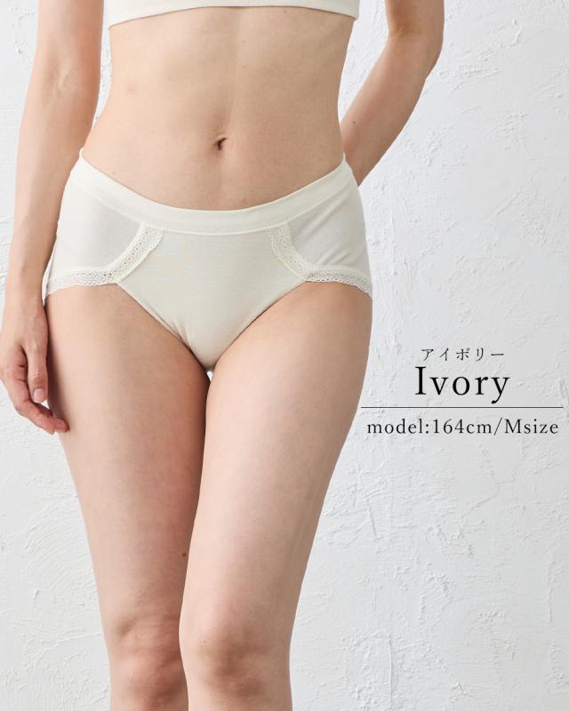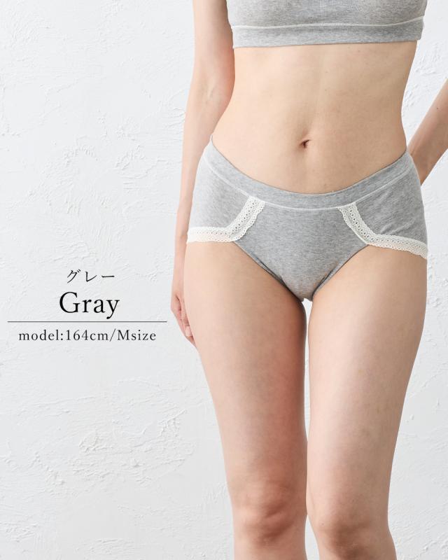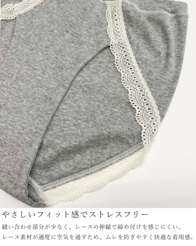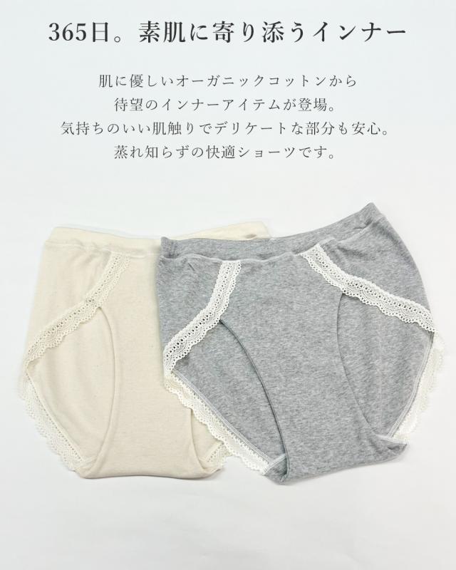 オールシーズンアイテム 春 夏 秋 冬スタンダードショーツ ショーツ サイドレース ウエストゴムオーガニックコットン シンプル カジュアル きれいめ 日本製インナーウエア 肌着 下着 冷え取り あったかインナー 伸縮性 肌に優しい 伸びる ストレッチ アイボリー グレー