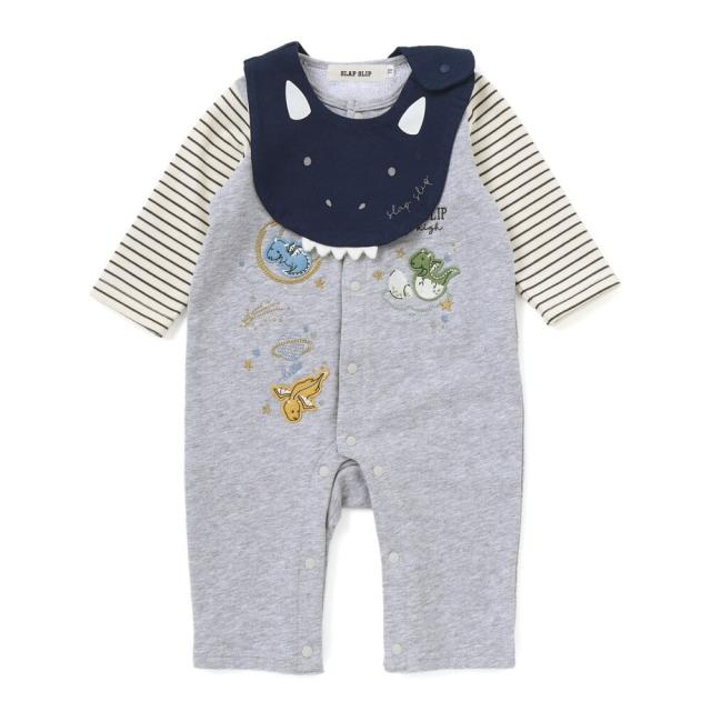 【50%OFF 2025秋物 ベビー 赤ちゃん】 SLAP SLIP(スラップスリップ)ドラゴン刺しゅうロンパース+お顔スタイ2点セットベビー