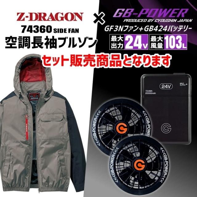 【即日発送】空調服 長袖ブルゾン サイドファン Z-DRAGON 74360 バッテリー&ファンセット GB-POWER 24V チタンコーティング 遮熱 UVカット 熱中症対策 軽量 撥水 作業着 作業服 電動ファン対応作業服 自重堂