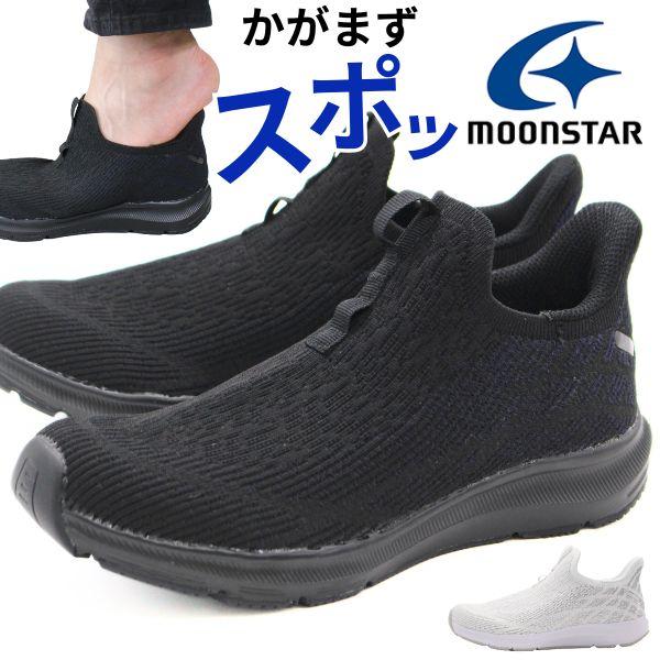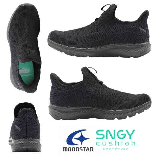 スニーカー メンズ 靴 スリッポン 黒 ブラック 白 ホワイト 疲れない シンプル きれいめ 軽量 軽い 通勤 通学 ジム ウォーキング フライニット 歩きやすい 柔らかい 防臭 耐摩耗 通気性 蒸れない ムーンスター シナジー MOONSTAR SNGY U28