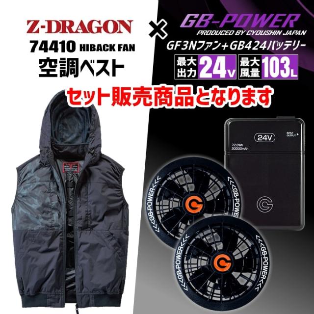 【即日発送】空調服 ハイバックファン ベスト Z-DRAGON 74410 バッテリー&ファンセット GB-POWER 24V チタンコーティング 遮熱 UVカット 熱中症対策 軽量 撥水 フード 作業着 作業服 電動ファン対応作業服 自重堂