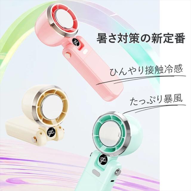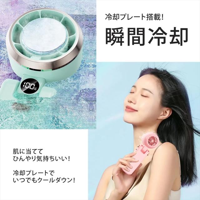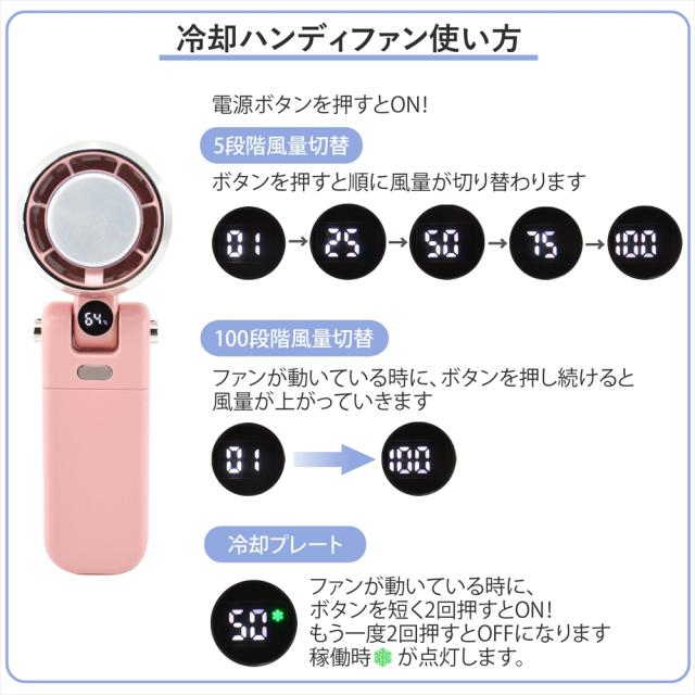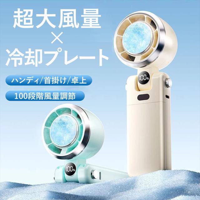 ハンディファン 冷却プレート 小型 扇風機 2025 ハンディ ファン 首掛け 卓上 3way 冷風 強風 5段階 100段階 風量 デジタル表示 軽量 コンパクト 充電式 4000mAh 大容量 バッテリー USB充電式 Type-C 接触冷感 手持ち扇風機 携帯扇風機 首掛け扇風機 ネッククーラー