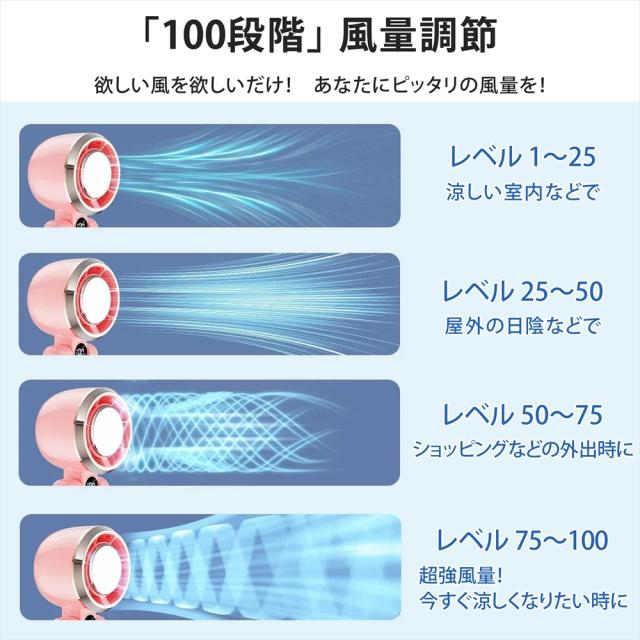 | 商品説明 | 。○。○。○。○。○。○。○。○。○。 暑さ対策の決定版! 超大風量とひんやり冷却プレートで、いつでもどこでも快適クールダウン! 【冷却プレート搭載!瞬時にひんやり】 ・肌に当てるだけで、ひんやり気持ちいい冷却感♪ ・顔や首筋など、ピンポイントで冷やしたい場所に当てるだけで、瞬時にクールダウンできます。 【自由自在な風量調節!「100段階」風量調節&「5段階」切り替え】 ・状況に合わせて最適な風を選べる2つのモードを搭載。 ・100段階風量調節: 微風から超強風まで、お好みの風量を細かく設定可能。 ・5段階風量切り替え: ボタンを押すだけで、5段階の風量に簡単に切り替えられます。 【3WAY仕様で使い方いろいろ】 ・ハンディ: 手に持って、自由な角度で風を送れます。 ・首掛け: 付属のネックストラップを付けて、両手が塞がっている時でも涼しい風を楽しめます。 ・卓上: 台座を折り曲げて卓上に置けば、デスクファンとしても大活躍! 【軽量&コンパクト設計】 ・約210gと軽量でコンパクトなので、カバンに入れても邪魔になりません。 ・持ち運びが楽なので、通勤・通学、旅行、アウトドアなど、様々なシーンで活躍します。 【カラーバリエーション】 ・ベージュ ・ミント ・ピンク 。○。○。○。○。○。○。○。○。○。 |