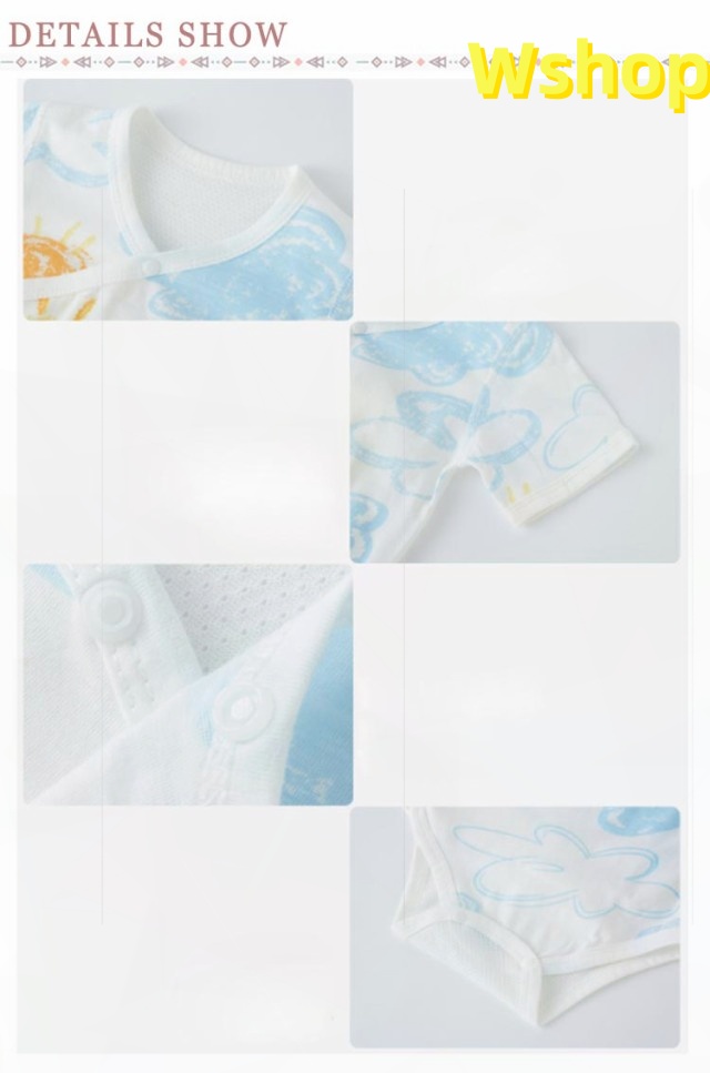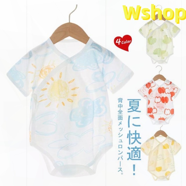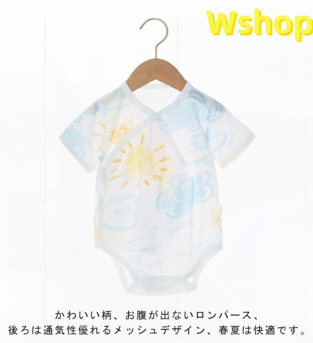 | 夏に快適!背中全面メッシュロンパース。 かわいい柄、お腹が出ないロンパース、後ろは通気性優れるメッシュデザイン、春夏は快適です。 寝かせたままのお着替えもラクチンなサイド紐結び全開きタイプで、肌着としてはもちろん、お部屋着としても大活躍の人気アイテムです。 肌に優しい上質な綿コットン生地、蛍光剤を一切使用してないので、新生児でも安心してお使いいただけます。 | |