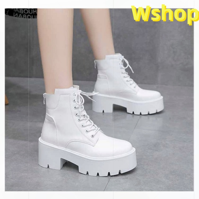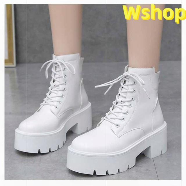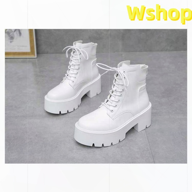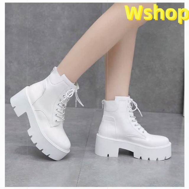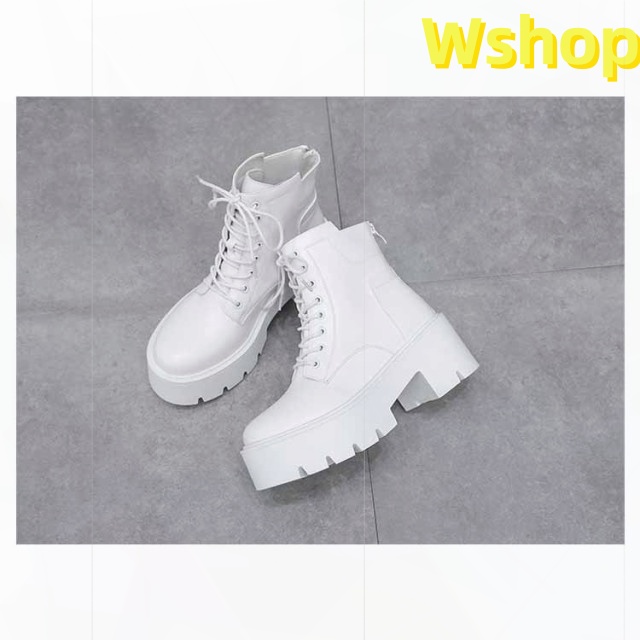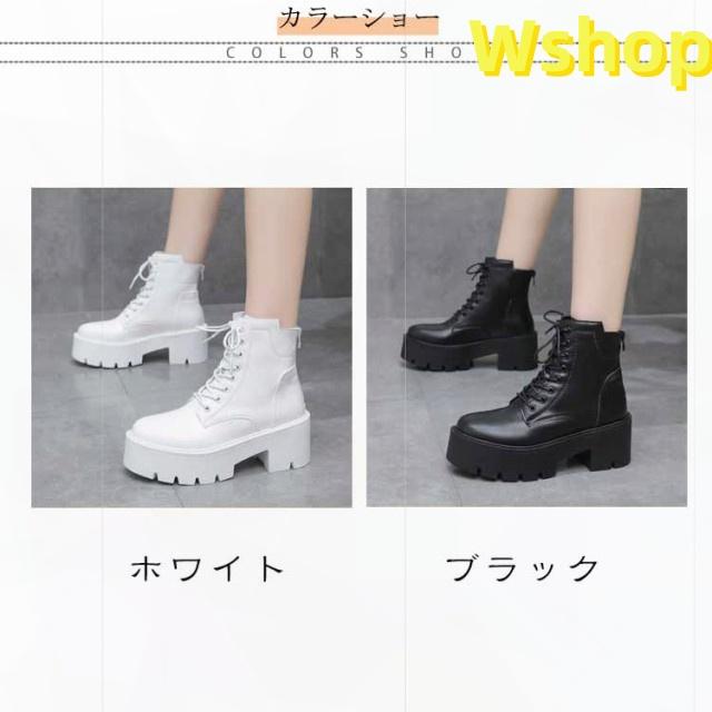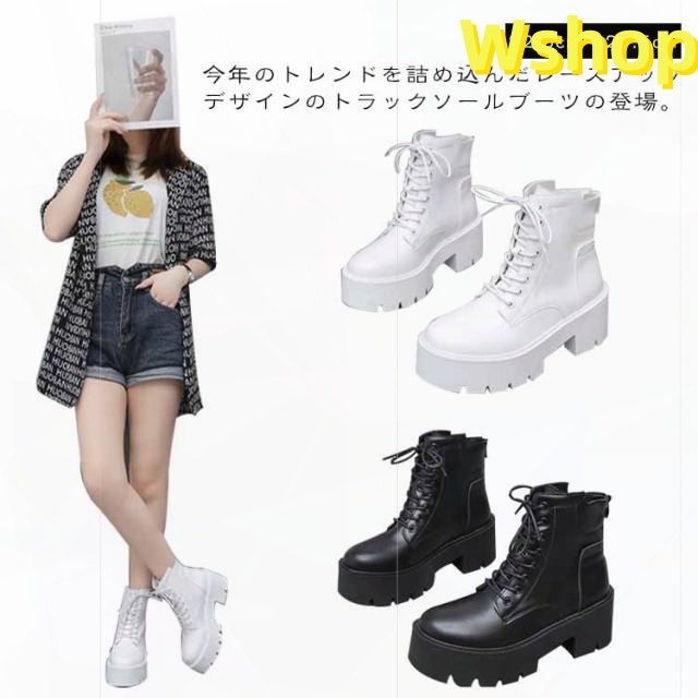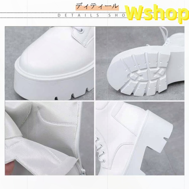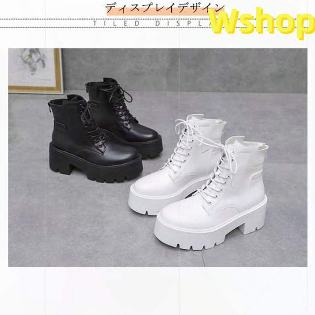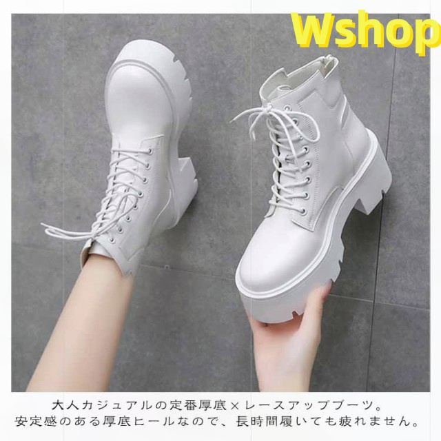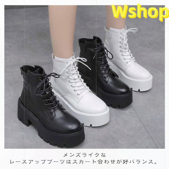 大きいサイズ 白 ハイヒール ショートブーツ ヒール 靴 レディース ブーツ 厚底 7cm ワークブーツ 厚底ブーツ レディース 秋ブーツ レースアップ かわいい レディース