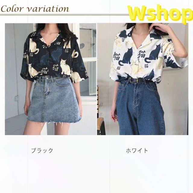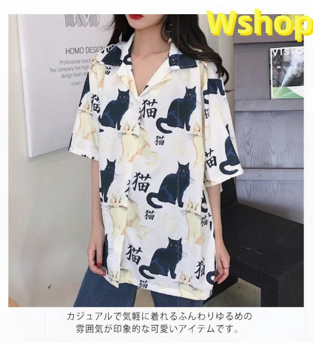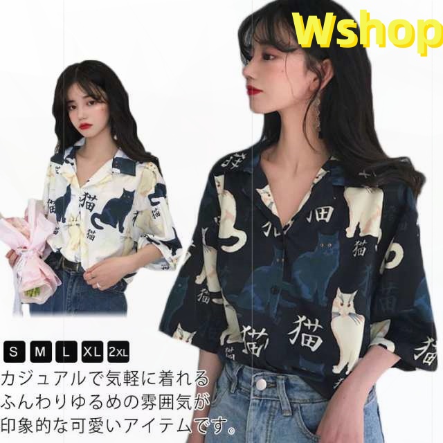レビュー高評価商品 毎日使える便利品 薄手 猫柄 可愛い レビュー高評価 ゆったり プリント 今だけ 速乾 半袖 話題商品 アロハシャツ リゾート トップス レディース シャツ ねこプリント ブラウス 数量限定入荷