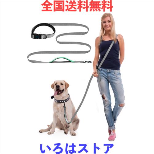 WANFIRE ハンズフリー 犬用リード 2.7m 多機能 クロスボディ 調節可能ウエストベルト 散歩・ランニング・ハイキング用 (GreyGreen 5-8.8f