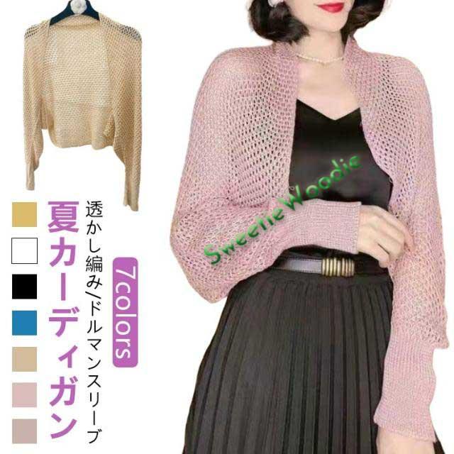 ボレロ 透明 カーディガン 春 夏 レディース 可愛い 透け 総レース カーディガン 夏 ドルマンスリーブ 白 ホワイト ホワイト 透け ブラック 透かし編み ブラック ブルー ベージュ ピンク ブラウン