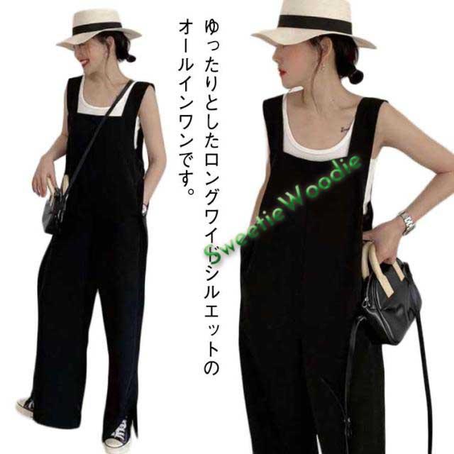 可愛い パンツ オールインワン 春夏 通勤 サロペット 大人 クエアネック 落ち感 きれいめ カジュアル ワイドパンツ サロペット 旅行 お洒落 オフィス ゆったり 大きいサイズ ブラック
