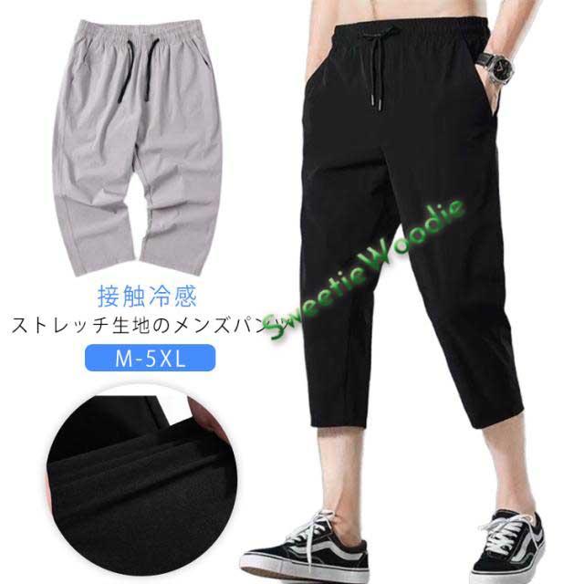 メンズ 伸縮性 接触冷感 クロップドパンツ クロップド丈 ストレッチパンツ クロップドパンツ パンツ 薄手 七分丈 ウエストゴム 大きサイズ 春夏 30代 40代 20代
