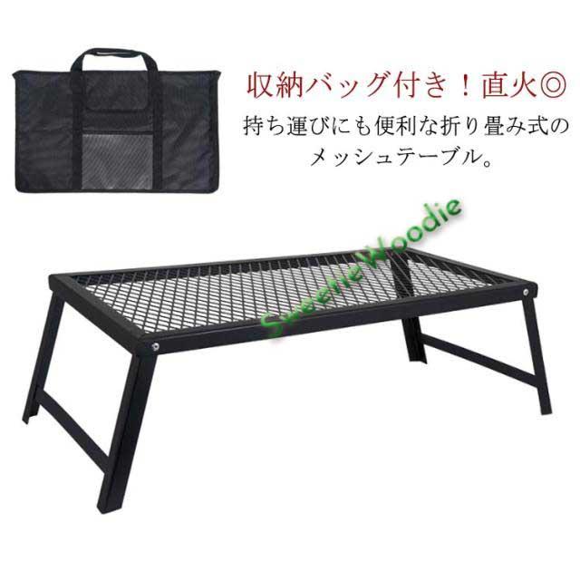 アウトドアテーブル メッシュテーブル 折りたたみ キャンプ テーブル ラック フィールドラック 収納バッグ付き スチールテーブル 折りたたみテーブル レジャーテーブル バーベキュー BBQ 直火 焚き火 軽量 組立簡単 コンパクト キャンプ用品