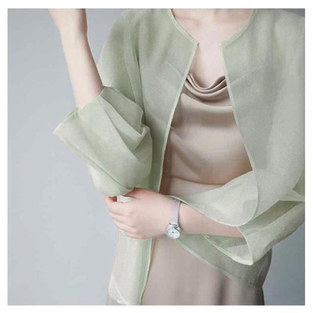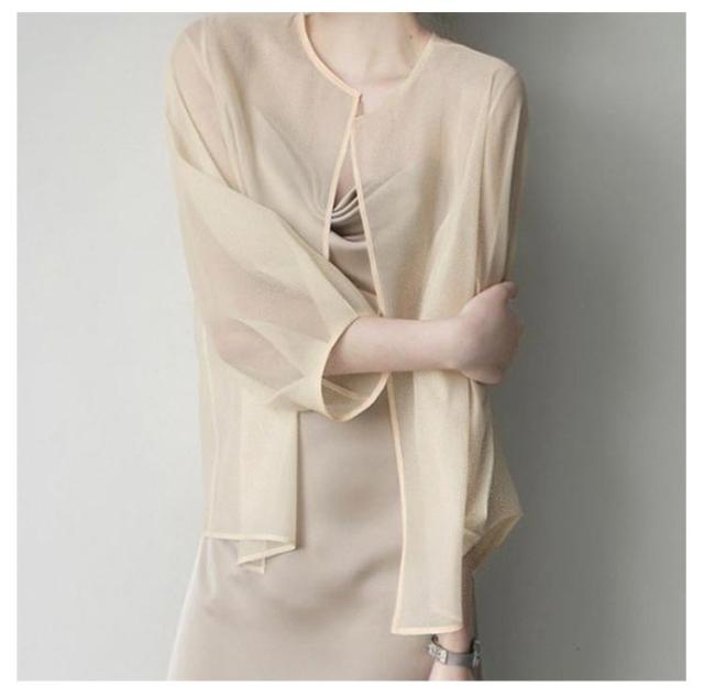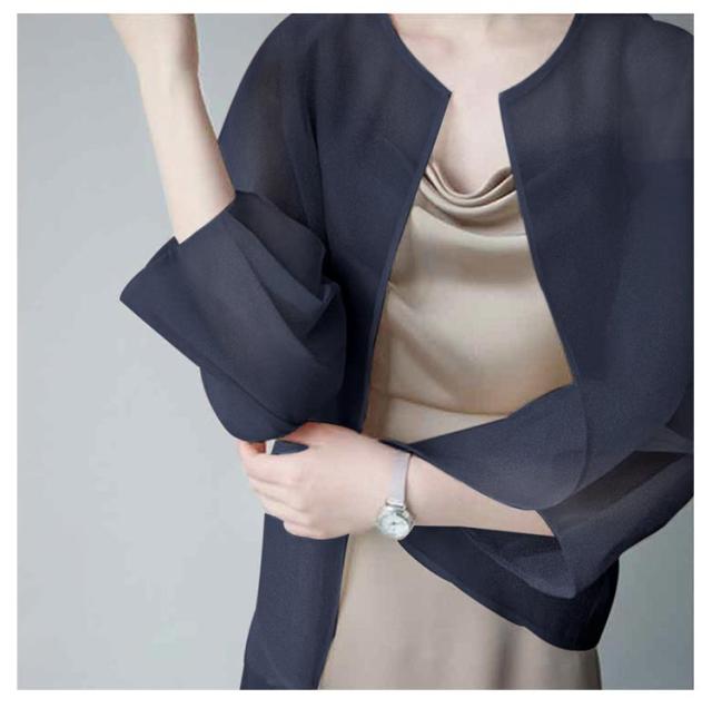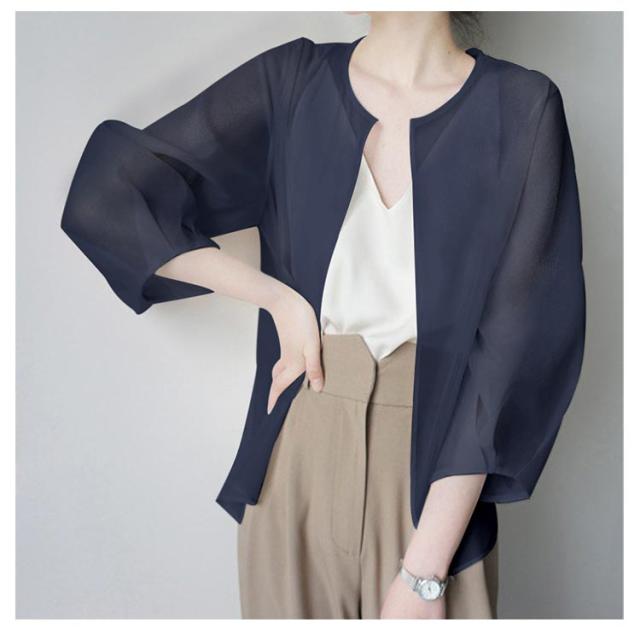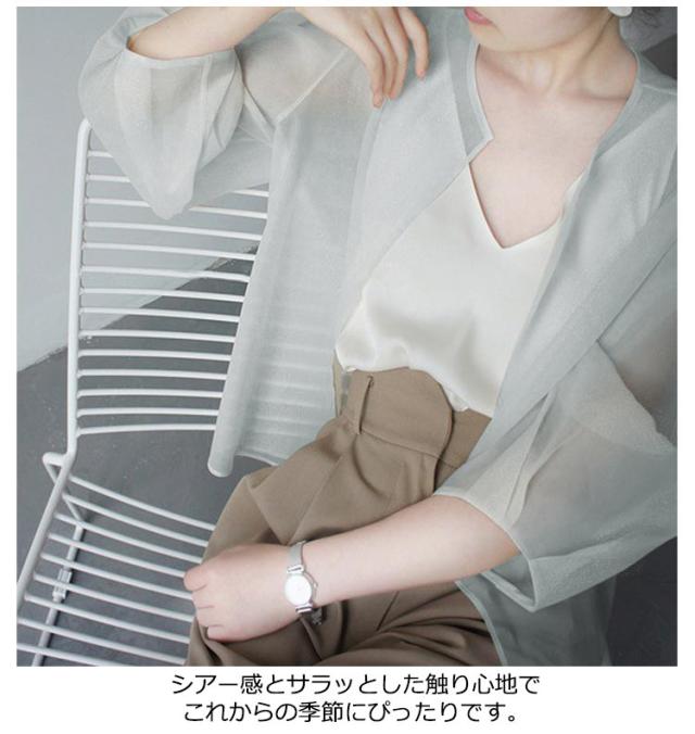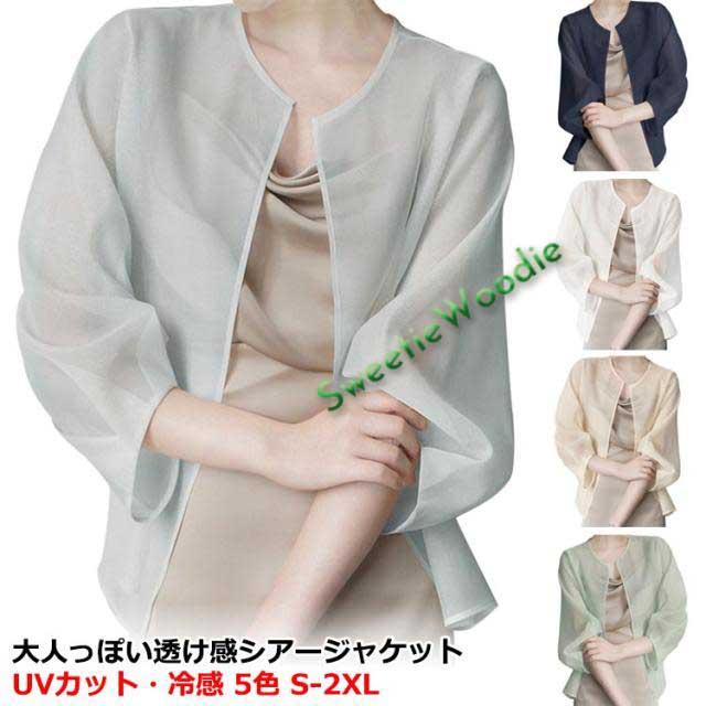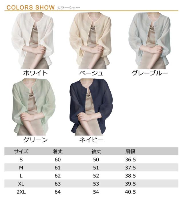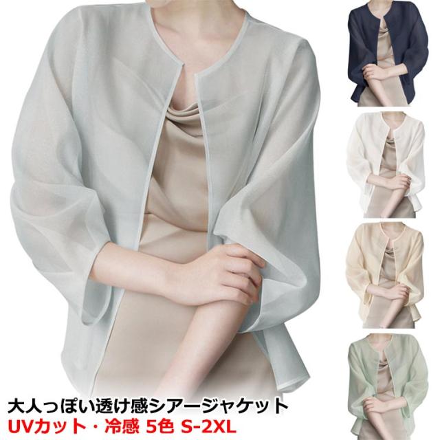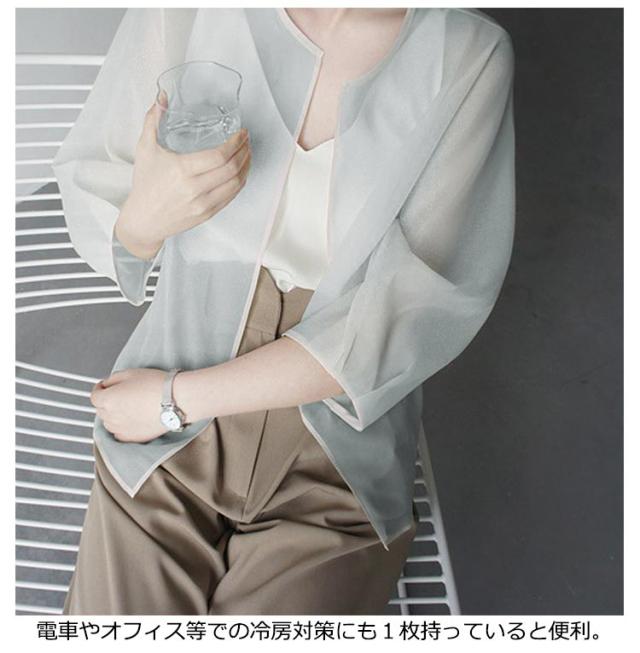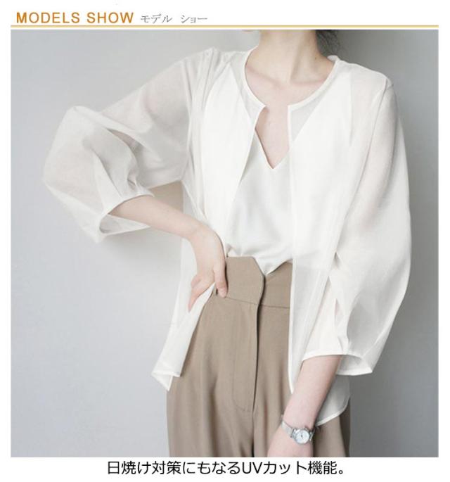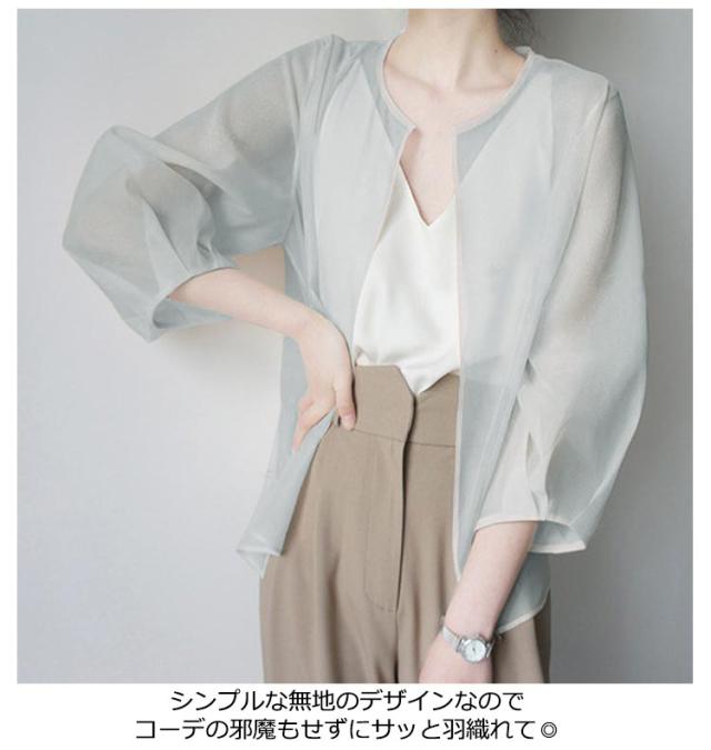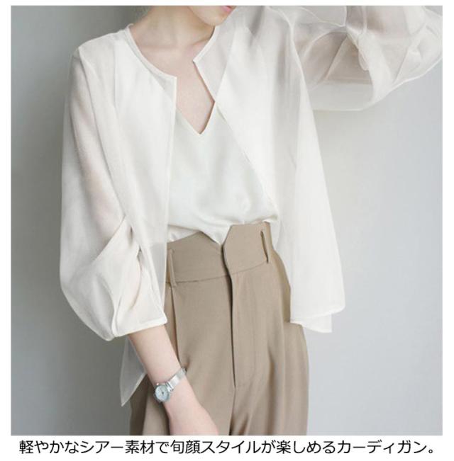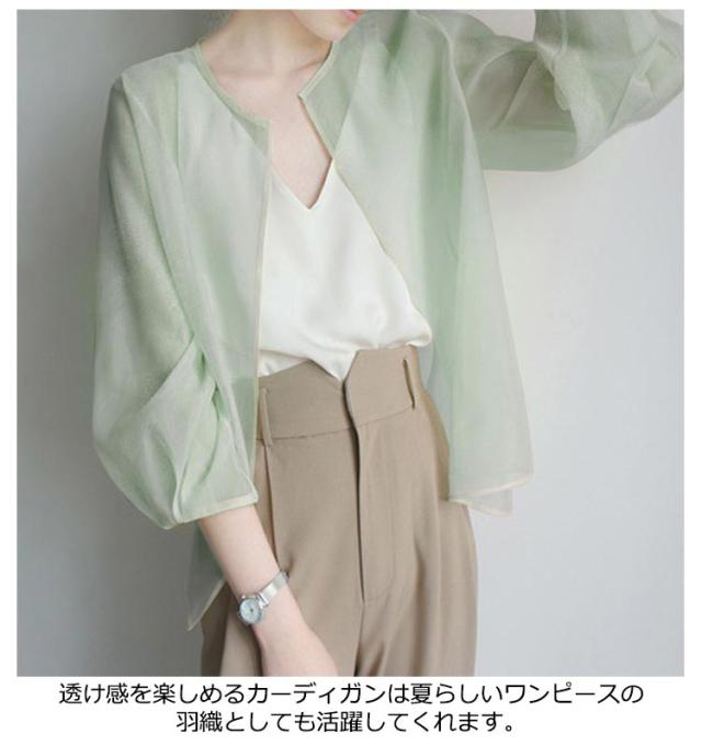 サマーアウター ボレロ カーディガン シアー レディース 透け 透け感 シースルー シアー シアージャケット 春 夏 ジャケット 大人っぽい 長袖 UV 冷房対策 羽織 ノーカラー ボリューム袖 シフォン トップス 夏物