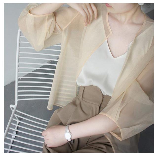 | 大人っぽい透け感シアージャケット UVカット・冷感 5色 S-2XL 日焼け対策にもなるUVカット機能。 軽やかなシアー素材で旬顔スタイルが楽しめるカーディガン。 首のラインや顔周りをすっきりと見せてくれるクルーネックタイプ。 電車やオフィス等での冷房対策にも1枚持っていると便利 シアー感とサラッとした触り心地でこれからの季節にぴったりです シンプルな無地のデザインなのでコーデの邪魔もせずにサッと羽織れて◎ 透け感を楽しめるカーディガンは夏らしいワンピースの羽織としても活躍してくれます。 | |