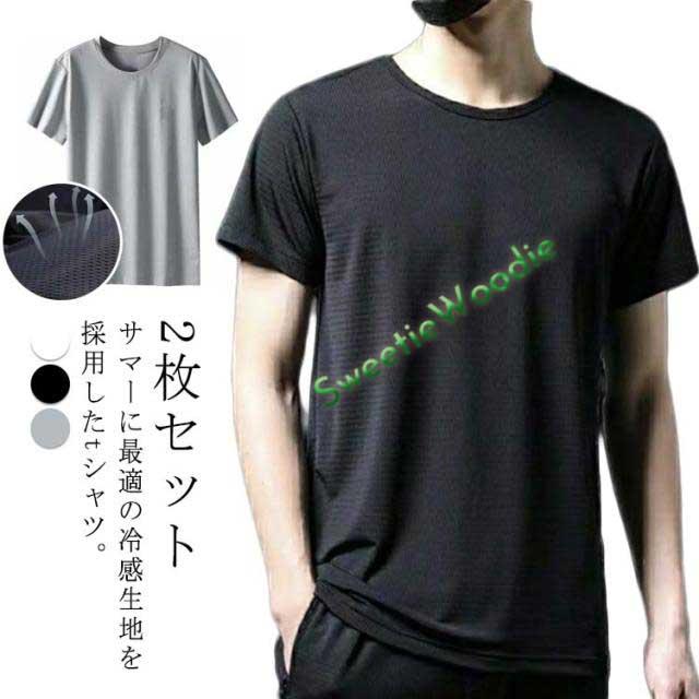 2枚組 tシャツ ジム クールTシャツ ジョギング ひんやりTシャツ 半袖 スポーツ メンズ 接触冷感冷感tシャツ ランニング ウェア メッシュTシャツ ゴルフウェア インナー 2枚組 クールTシャツ アイスシルク 涼しい