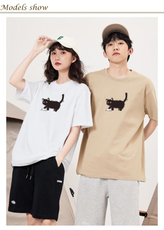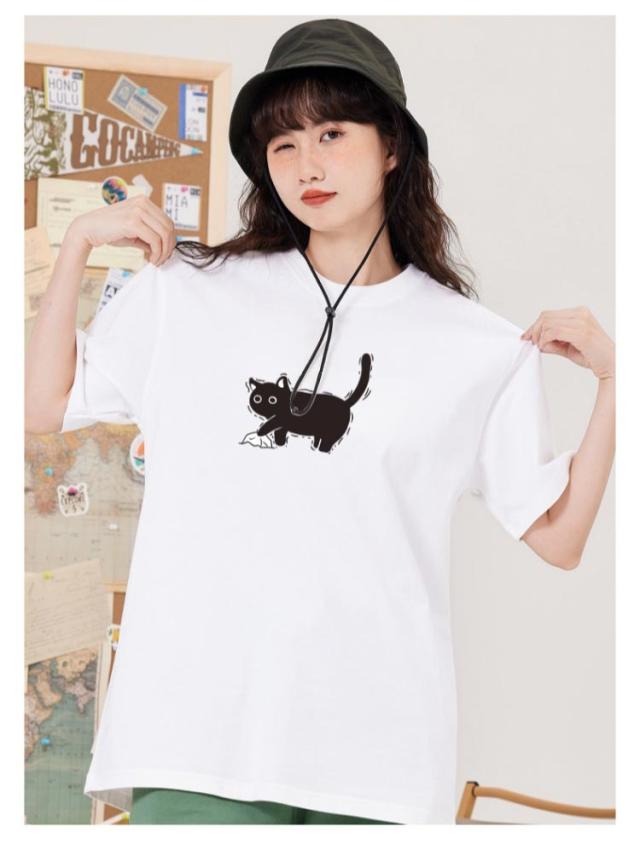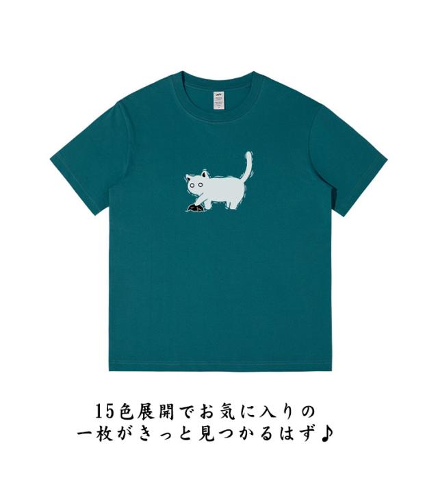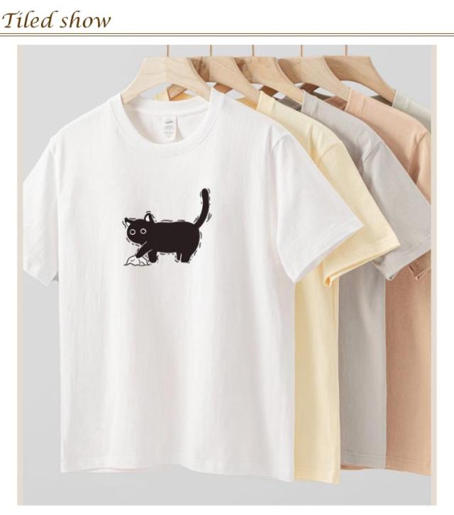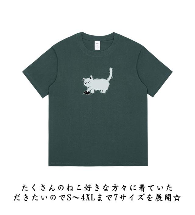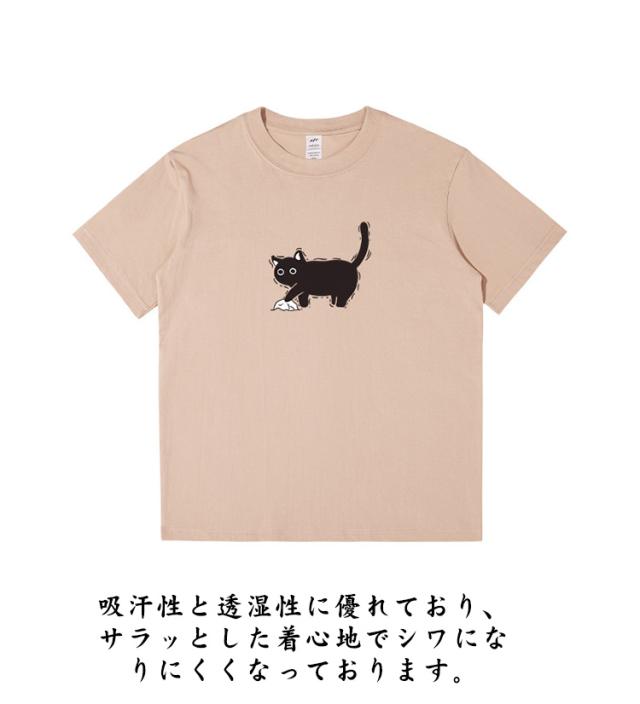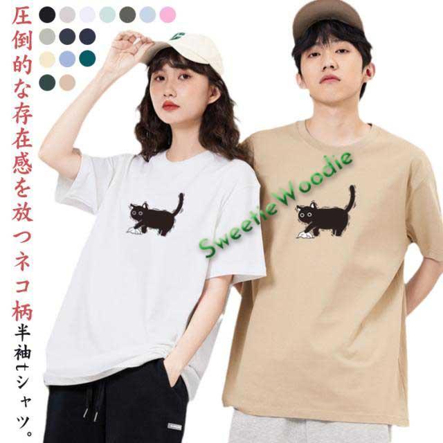 猫プリントtシャツ カットソー 男女兼用 猫プリントtシャツ tシャツ 春夏 レディース メンズ トップス 猫 ラウンドネック ねこ キャット にゃんこ 可愛い