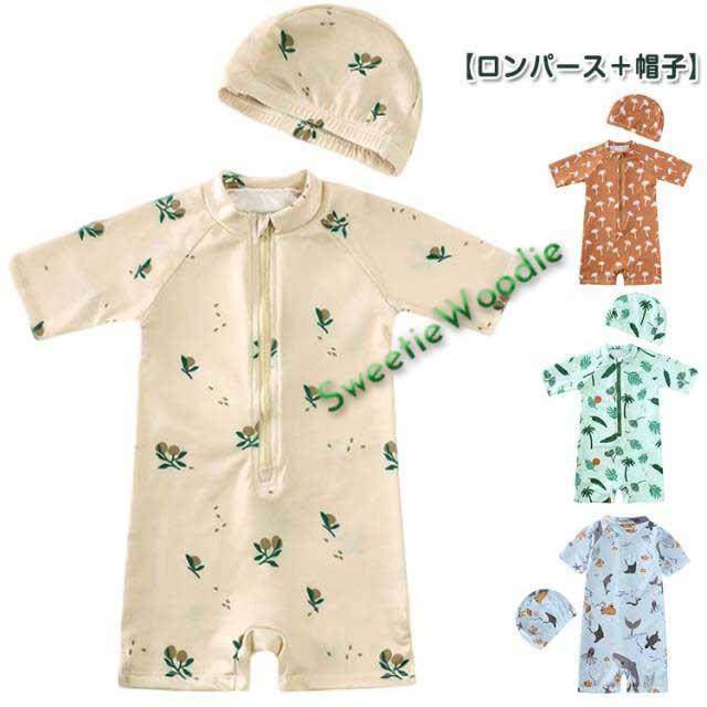 2点セット UVカット キッズ ベビー服 男の子 ベビー水着 女の子 キッズ ロンパース ロンパース キャップつき 子供 キッズ水着 ベビー水着 水着 ラッシュガード オールインワン 子供 スイミング 子供 服 幼稚園 保育園 キッズ 半袖