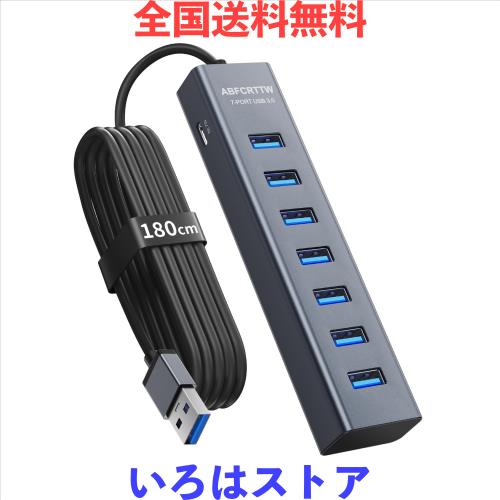 1.8m 7ポート USB 3.0 ハブ デスクトップ用 - アルミニウム製 USB Hub 5Gbps, 長いケーブル対応(180cm)PC、フラッシュドライブ、外付け