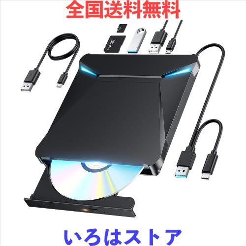 【2025革新型・6In1新モデル】 dvdドライブ 外付け cdドライブ 光学ドライブ 外付け dvd cd/dvdプレーヤー USB3.0 薄型 静音 高速処理 軽