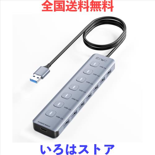 JESWO USBハブ USB3.0 HUB 7ポート 100cmケーブル 独立スイッチ USB3.0ハブ USB 拡張 ウルトラスリム 5Gbps超高速転送 アルミニウム合金