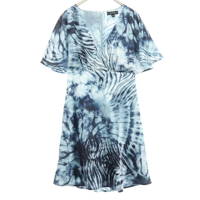 Guess ゲス 総柄 半袖 バックジップ 膝丈ワンピース XS ブルー レディース