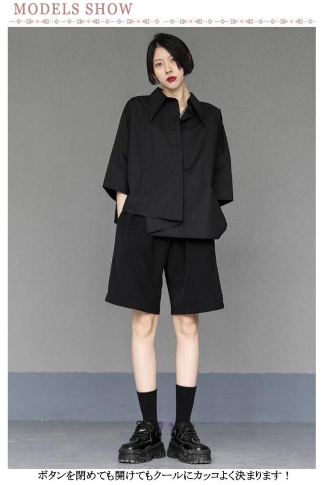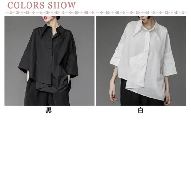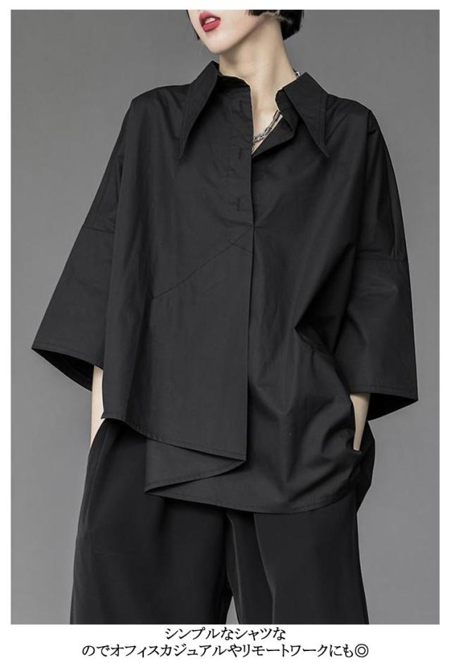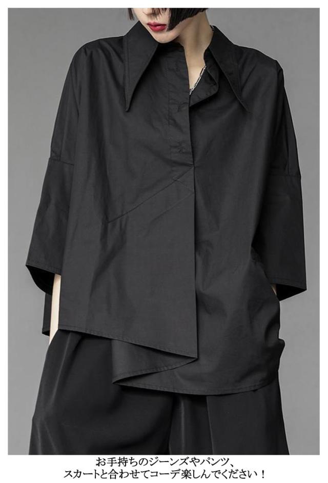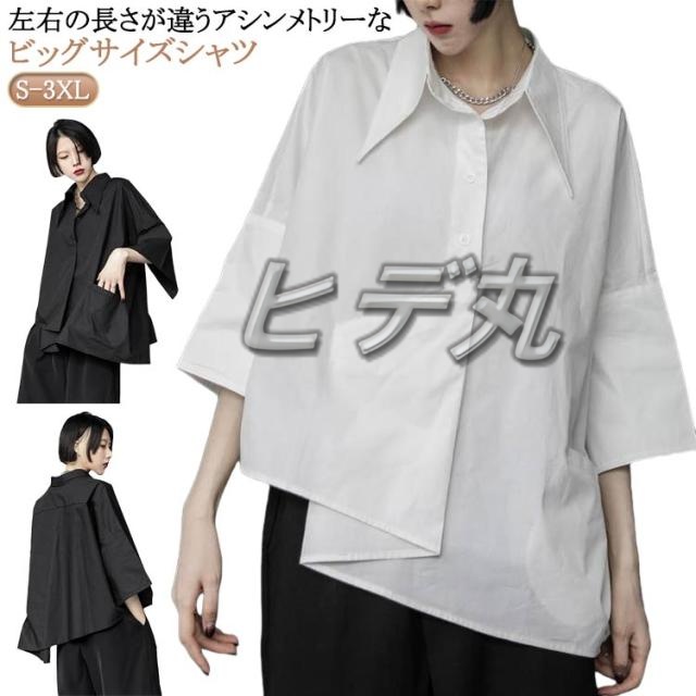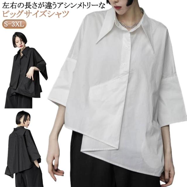 シャツ メンズ オーバサイズ オフィス 七分袖 夏 大きいサイズ 白 原宿系 レディース ユニセックス 不規則 黒 シャツ 春 大きいサイズ カジュアル 送料無料 アシンメトリー モード系 ビッグシャツ 個性的 韓国ファッション シャツ ビッグシルエット V系