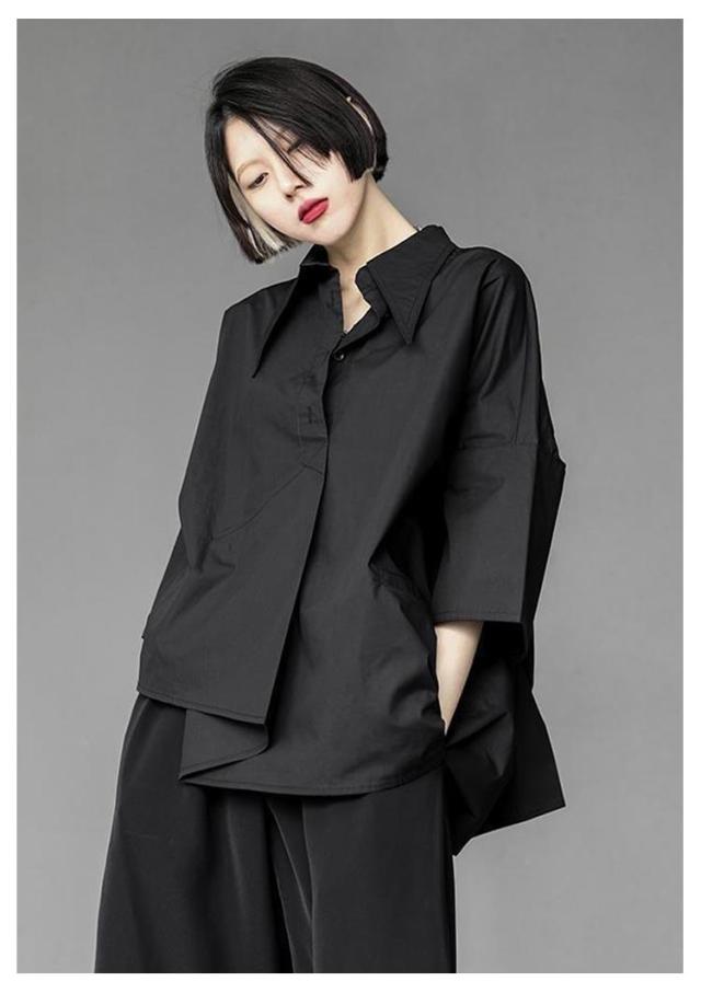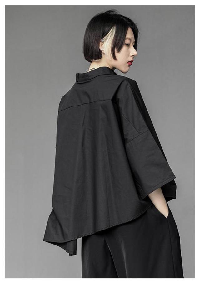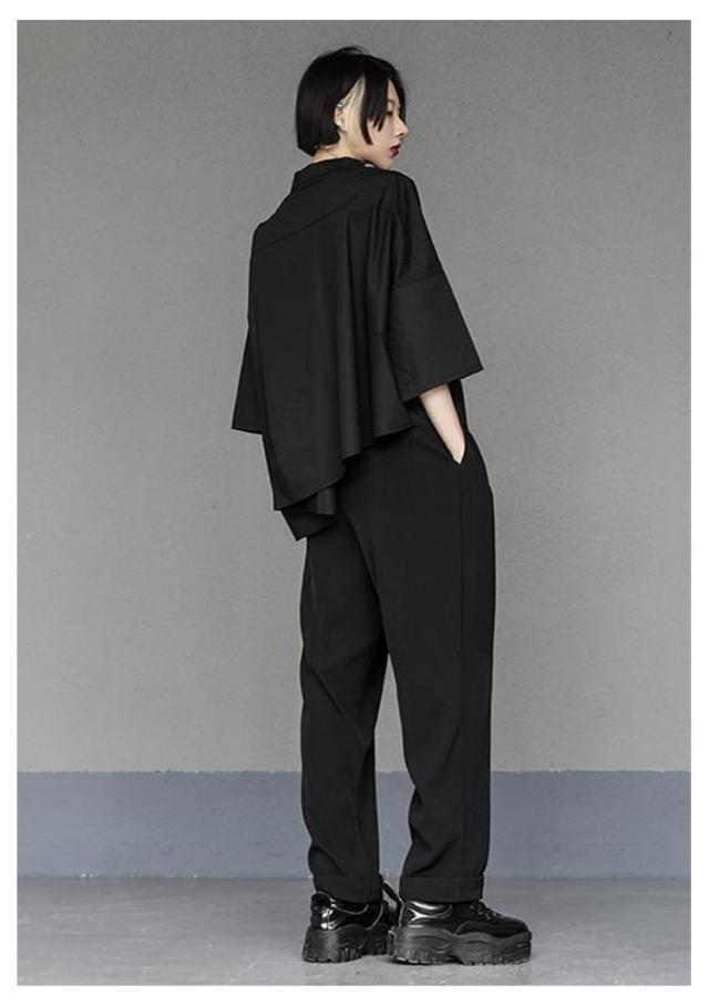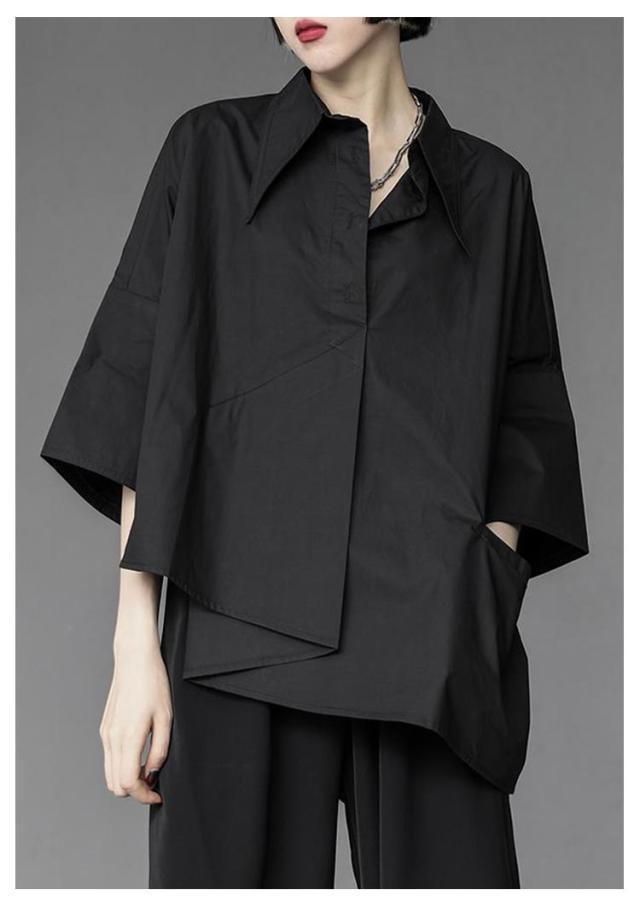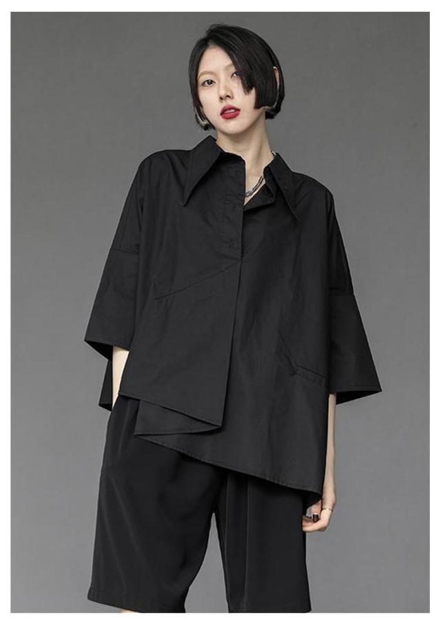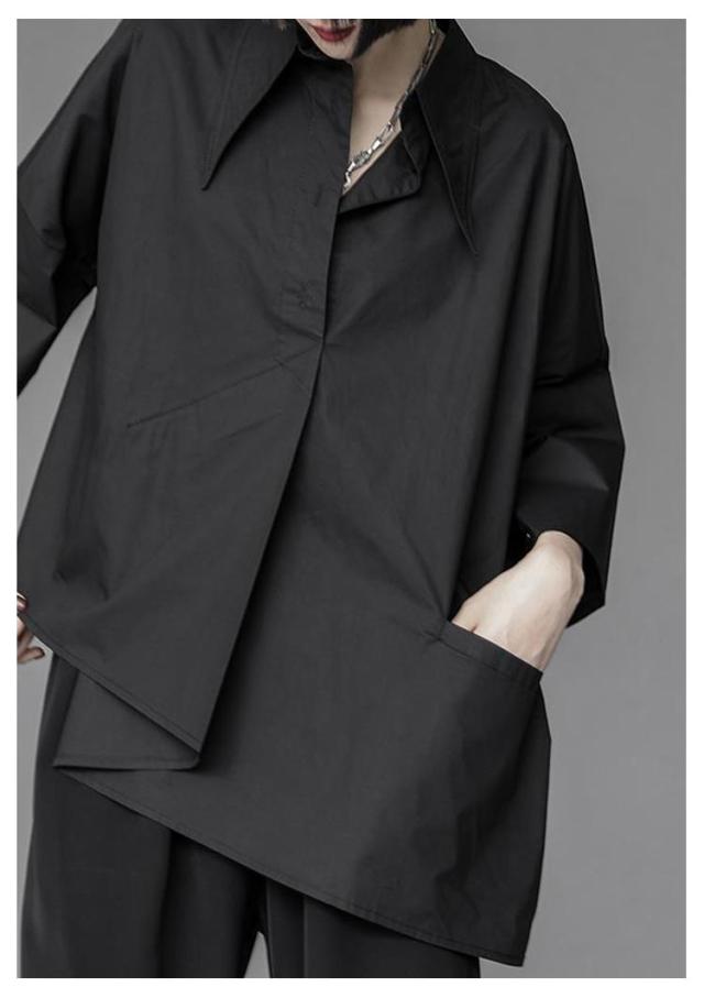 シャツ メンズ オーバサイズ オフィス 七分袖 夏 大きいサイズ 白 原宿系 レディース ユニセックス 不規則 黒 シャツ 春 大きいサイズ カジュアル 送料無料 アシンメトリー モード系 ビッグシャツ 個性的 韓国ファッション シャツ ビッグシルエット V系