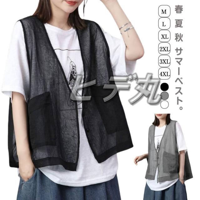 ベスト ジレ 夏 薄手 透け 春 サマーベスト 無地 ジレベスト 前開き ベスト レディース 涼しい シアー カーディガン トップス ノースリーブ レイヤード 重ね着 綿 コットン チョッキ 羽織り ライトアウター きれいめ カジュアル ポケット 大人 可愛い