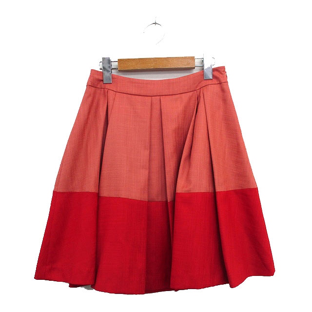 【中古】アナトリエ ANATELIER プリーツ スカート 膝丈 バイカラー 36 レッド 赤 /KT15 レディース