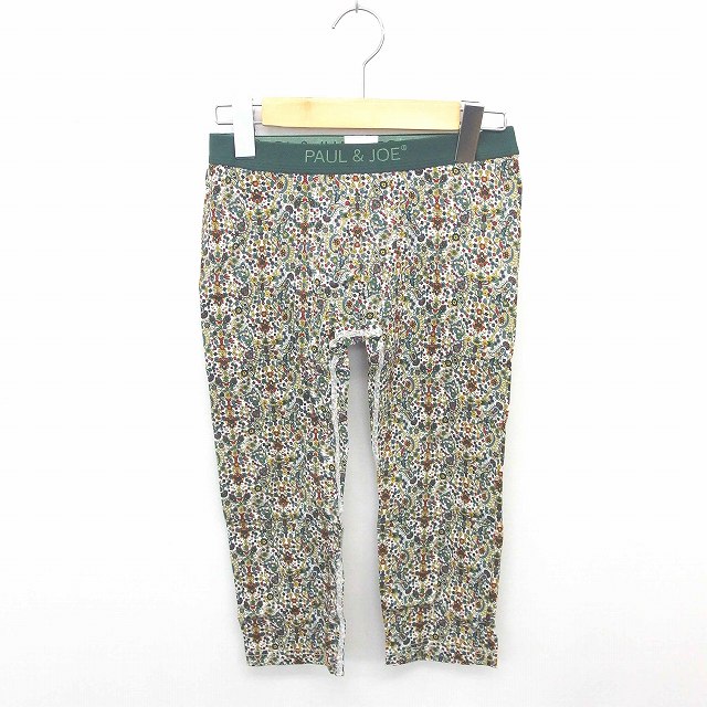 【中古】未使用品 ポール&ジョー PAUL&JOE 箱付き パンツ レギンス クロップド 花柄 薄手 ストレッチ M 緑 白