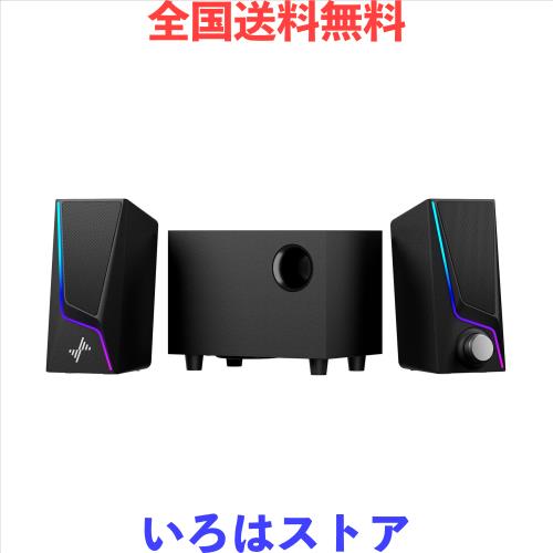 Nylavee PCスピーカー サブウーファー付き 2.1ch 重低音 USB/USB-C給電 3.5mm接続 ライト付き パソコン用 デスクトップ モニター ノート