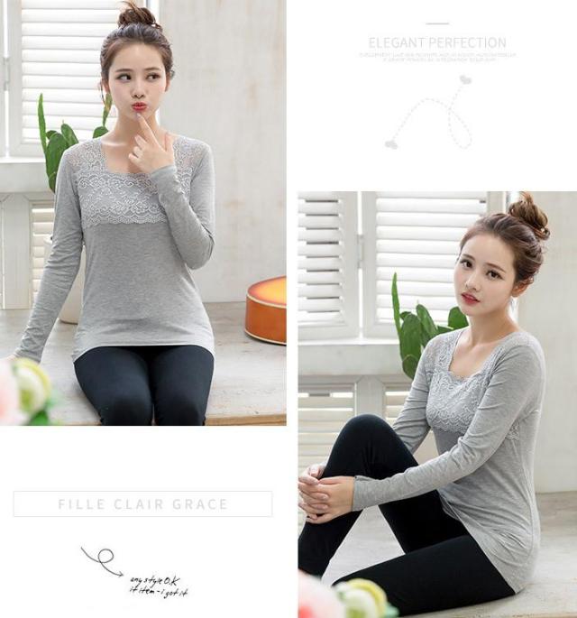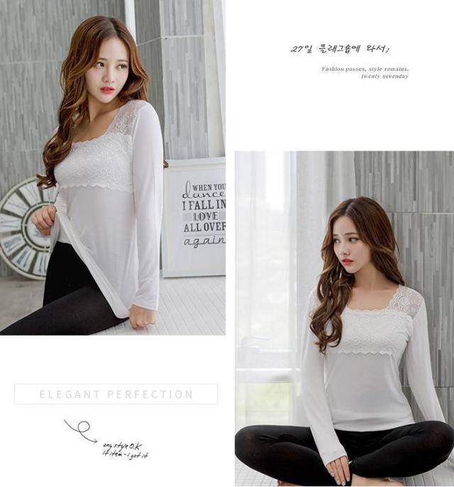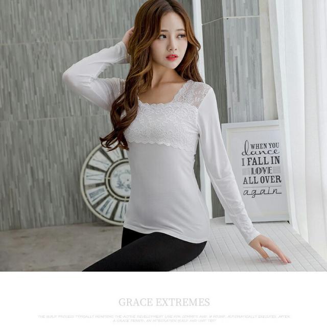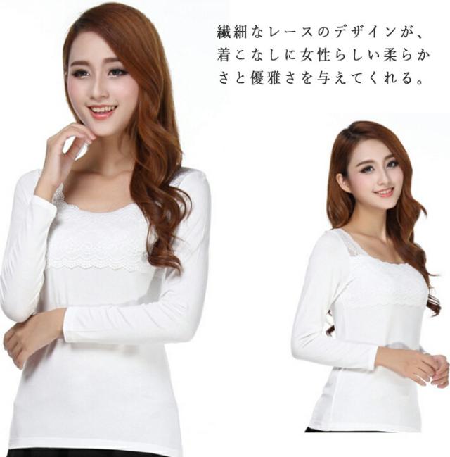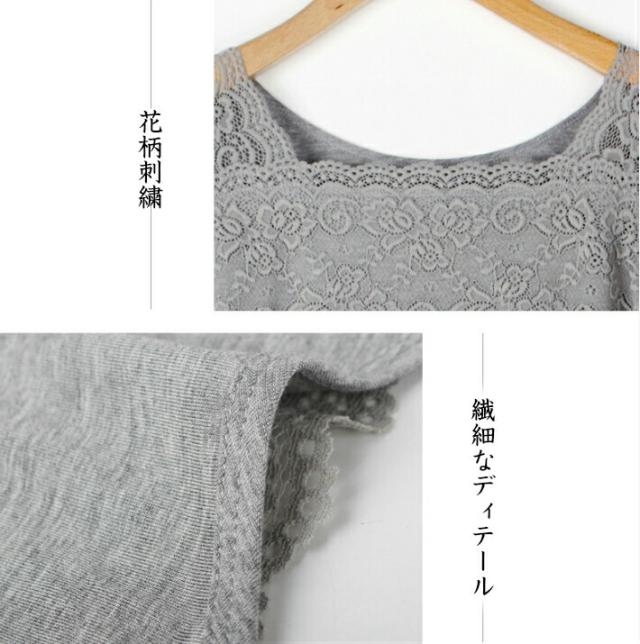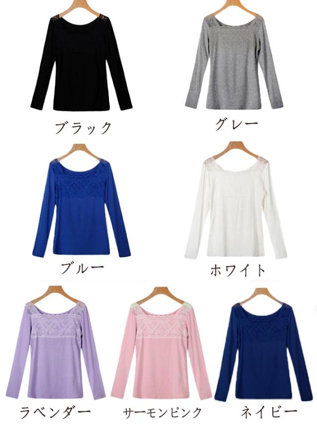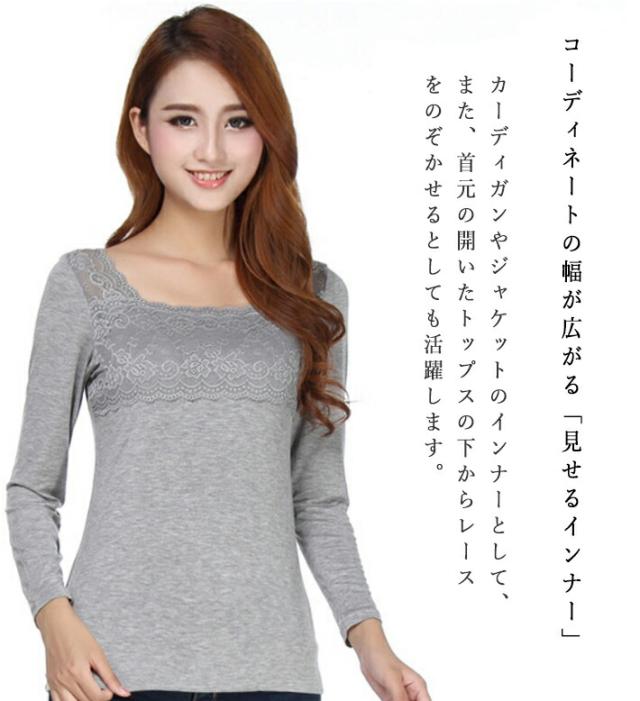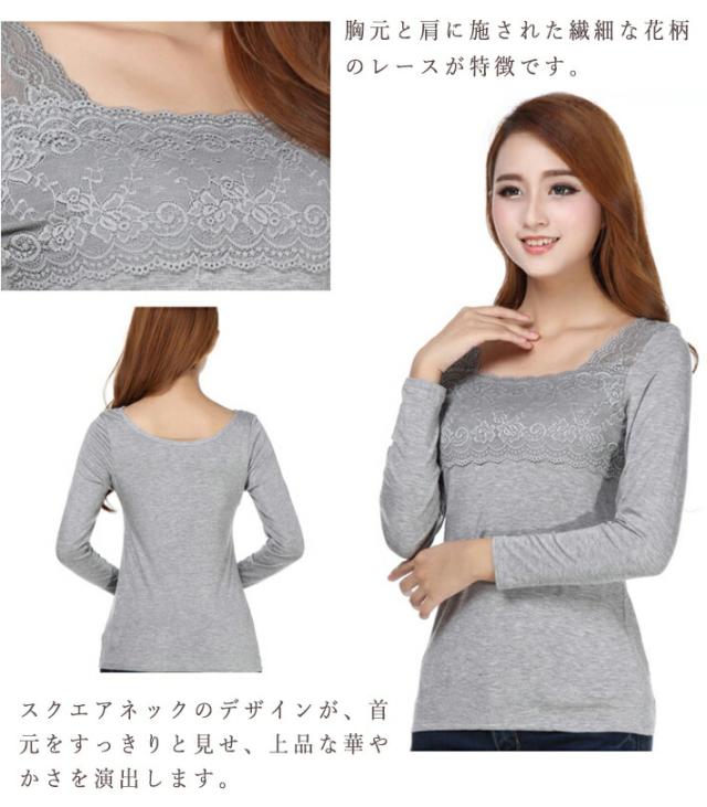 レース 花柄 刺繍 レースインナー 肌着 下着 トップス レースインナー レディーストップスカットソー あったか 長袖 スクエアネック シンプル ホワイト グレー ブルー レディーストップス春 秋冬