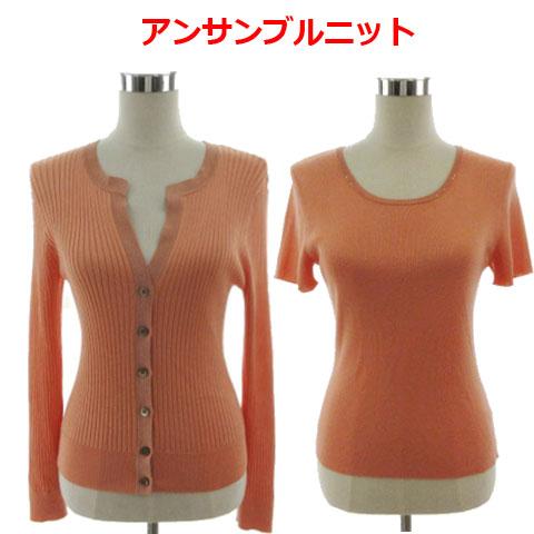 【中古】23区 アンサンブルニット カーディガン リブ 長袖 ニット ビーズ 半袖 オレンジ系 ピンクオレンジ 40