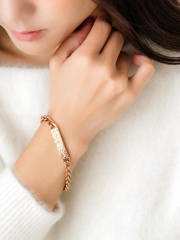 | 6mm幅の喜平チェーンを使用した存在感のあるのバーブレスレット。 カットされていない丸みがハンサムさの中にも 優しい柔らかさを醸し出す逸品。 バーの部分には、ハワイアンの人気の模様がデザインされていて、 どこから見られても手元を華やかな印象に。 また、チェーン部分の好きなところで留めることができるので、 お好みの長さでお使いいただけます。 ドレープスタイルやタイトでクールなスタイルと 長さを変えるだけで少し違った表情を楽もしめるイチオシのアイテムです。 サージカルステンレスを使用しているので、 お肌に優しくプレゼントにもお薦めです。 |
