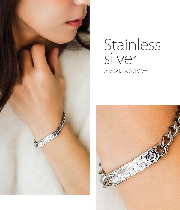 ハワイアンジュエリー ステンレス ブレスレット 金属アレルギー対応 喜平 6mm キヘイ チェーンブレスレット ごつめ プルメリア スクロール アジャスター チェーン レディース メンズ バー プレート ブレス 重ねづけ 女性 男性 プレゼント 男女兼用 henoheno ブランド