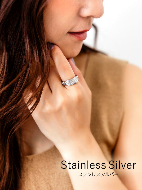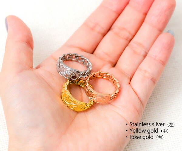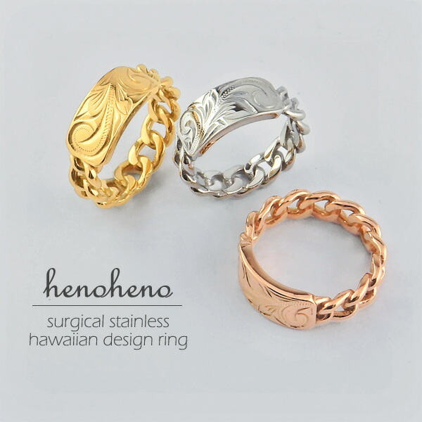 ハワイアンジュエリー チェーンリング ステンレス リング 指輪 レディース 喜平 太め ごつめ 金属アレルギー サージカルステンレス つけっぱなし スクロール 男女兼用 かっこいい プレート バー メンズ 大きいサイズ クリスマス ブランド henoheno