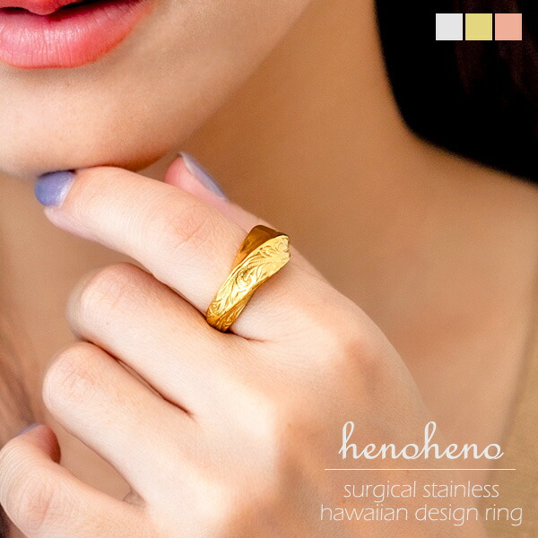 ハワイアンジュエリー リング 指輪 幅広 太め サージカルステンレス 金属アレルギー ひねり カーブ 個性的 おしゃれ デザインリング レディース メンズ ツイスト ボリューム 大ぶり モード トレンド 大きいサイズ 個性的クリスマス henoheno