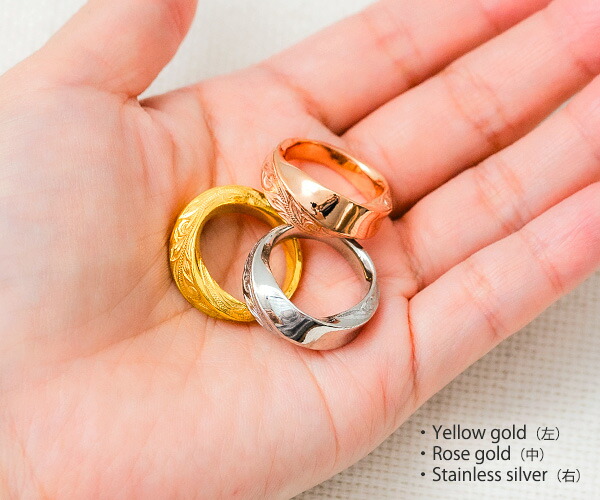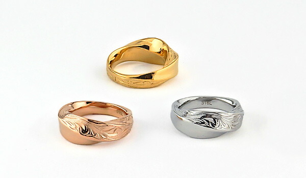 ハワイアンジュエリー ステンレス リング 指輪 女性 男性 人気 スクロール 親指 人差し指 中指 薬指 デザインリング プレゼント ギフト 男女兼用 ローズゴールド シルバー イエロー