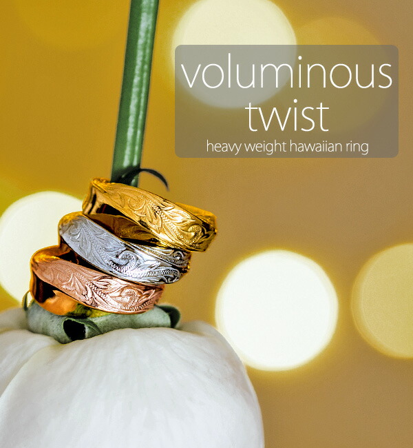 | ボリューム感がたまらないツイストボリュームリング。 光沢のあるプレーンなラインと ハワイアン模様のラインが絡み合うクラシカルなシルエットです。 装着感は見た目より軽やかで、 手元に華やかさと凛としたアクセントをプラスしてくれます。 大ぶりのわりに指通りが良いのも嬉しいポイント。 男女問わずお使いいただけるデザインなので、 オシャレなペアリングとしてもおすすめです。 |
